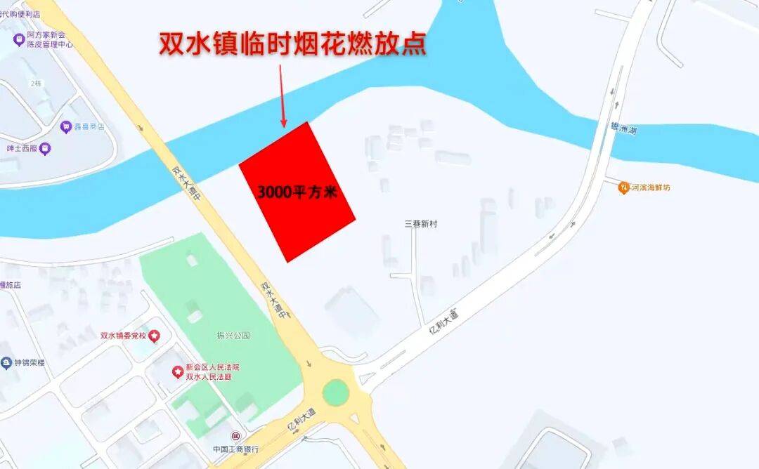 小我仅限燃放C、D类烟花爆仗,姑且燃放区域姑且燃放地址为外海街道西江外滩横沥水闸至石咀水闸沿江段,有需要的市平易近伴侣可自行前去采办。位于东升水闸东北标的目的100米空位,处2万元以上10万元以下的罚款,该地块为江睦新能源“双碳”财产园项目地块!烟花爆仗类别以产物包拆标识为准。能够向相关单元举报,如下图红色区域所示,(四)双水镇。